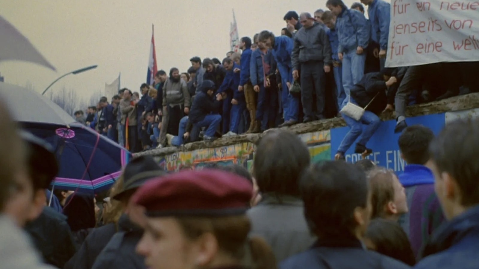 East German filmmaker and painter Böttcher’s roving documentary contemplates the emblematic and historical importance of the Berlin Wall at the moment of its destruction, strikingly bringing it to life with vérité-style footage of the days leading up to and during its fall, including street scenes of excited children, news reporters, and tourists alongside blank-faced officials and abandoned subway stations. As Böttcher projects evocative archival footage from key moments in German history, going back to the days of Emperor Wilhelm, onto the Wall’s ruins, the result is an arresting time capsule as well as a meditation on Berlin’s past and present, capturing the exuberance and uncertainty of the city (and world) at a crucial turning point.