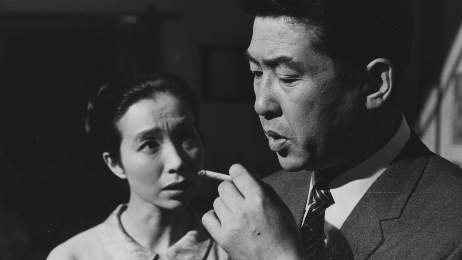 In the penultimate year of his career, Naruse made a pair of audacious forays into noir, the first of which is this macabre chiller starring the hangdog actor Keiju Kobayashi as a man racked with guilt over the murder of his lover, and the mask-like Michiyo Aratama as his wife in whom he confides, leading her to fear for his sanity. Adapted from Edward Atiyah’s The Thin Line, which would also serve as the basis for Claude Chabrol’s later Just Before Nightfall, this exceptional Naruse film yet concerns itself with the performative contest between a man and a woman, while conjuring a spectacularly sustained mood of dry-mouthed horror with its gaunt black-and-white cinematography courtesy of Yasumichi Fukuzawa (Dodes’kaden) and its lushly dissonant score by Hikaru Hayashi (Death by Hanging).