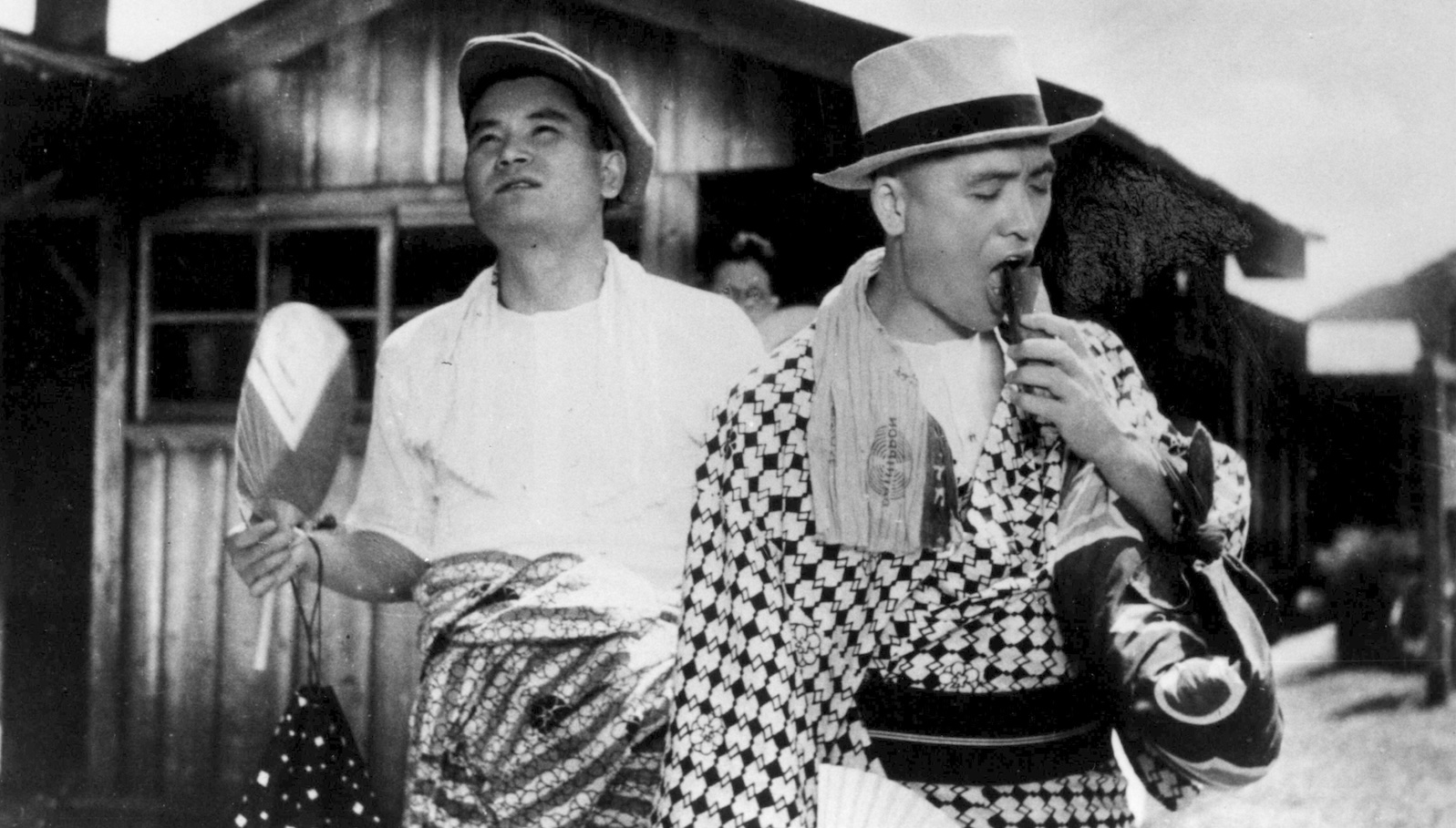 Naruse harbored a special affection for this rural farce starring the great comic actor Kamatari Fujiwara, familiar to American audiences as the cravenly cynical peasant Manzo in Kurosawa’s Seven Samurai. As written by Naruse himself, Hyoroku (Fujiwara), a lowly member of a backwoods kabuki troupe, brings buffoonish pomposity to his role as the front legs of the act’s puppet horse. When a drunken patron falls on the horse’s head, the company replaces it with the real McCoy, unceremoniously demoting Hyoroku and his sidekick Senpei to stable boys. Tinged with nostalgia for a pre-modern popular art and vanishing provincial folkways, Naruse’s film conjures a timeless aura as if to ward off the distant reality of war.