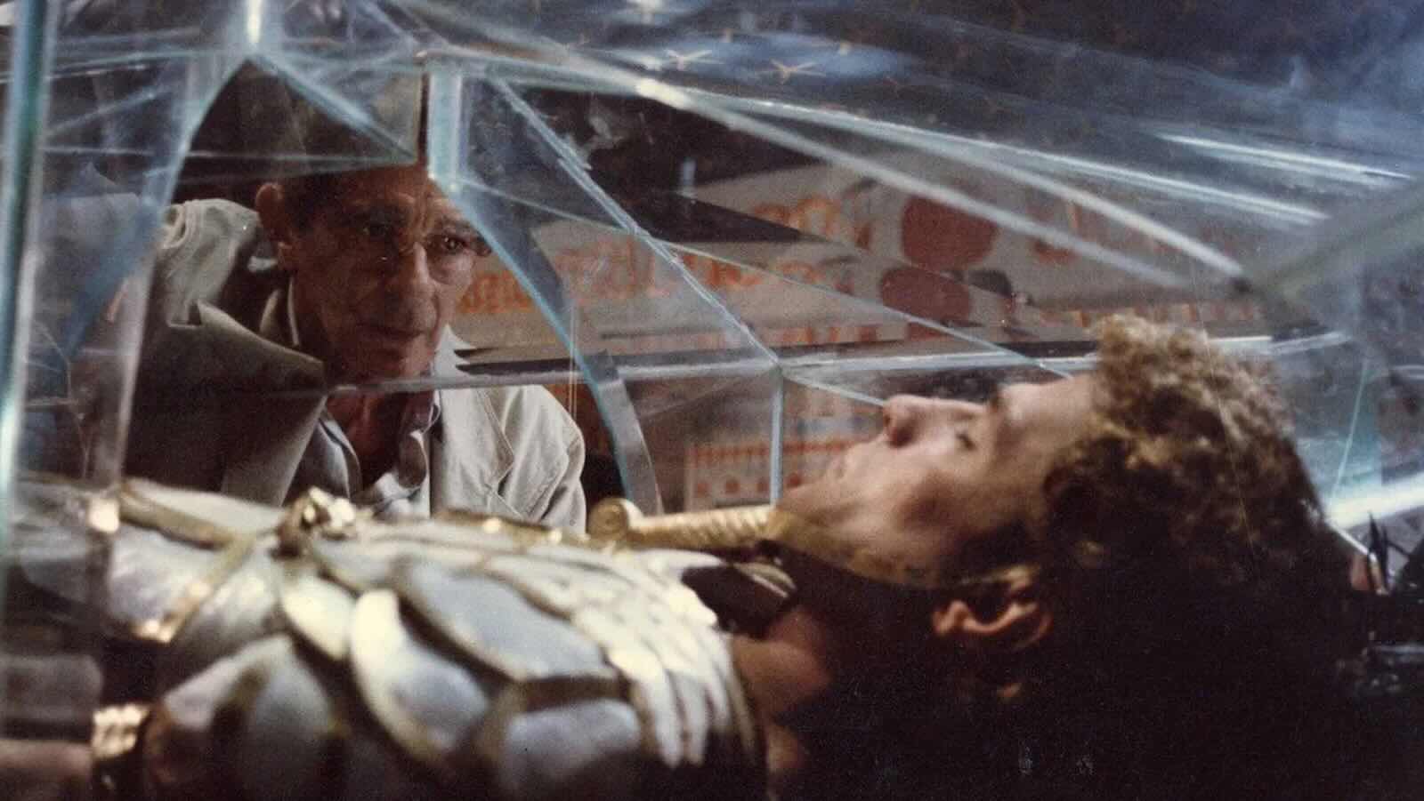 The third entry in Chahine’s autobiographical Alexandria Tetralogy finds Yehia (played, again, by Chahine himself) enjoying new international recognition but at another personal crossroads: at loggerheads with his favorite actor, Amr (Amr Abdel Gelil); unable to work due to a strike that has brought an already-in-crisis Egyptian film industry to a standstill; and preoccupied by a beguiling young actress and activist, Nadia (Youssra), whom he envisions casting in the role of Cleopatra, among other things. A funny, freewheeling, fleet-footed young man’s film from sixtysomething Chahine, who employs animated interludes, musical numbers, and other sleights of cinema in a movie that fairly vibrates with love for the medium itself.