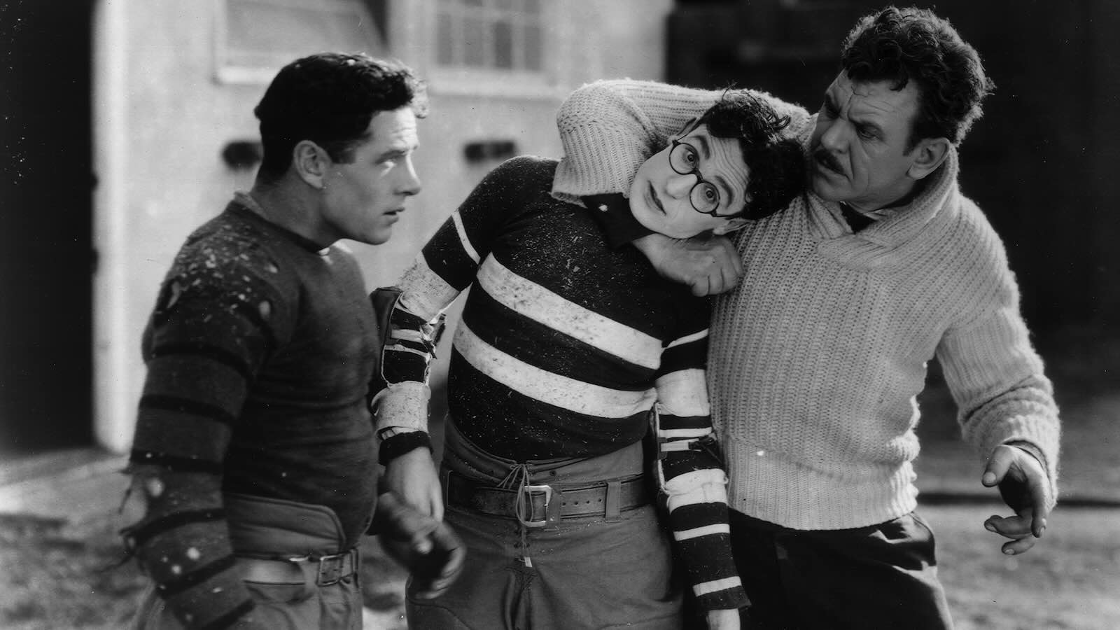 Harold Lloyd, whose round horn-rimmed glasses and straw-boater had, by 1925, become the international symbol for a certain breed of plucky can-do go-getter, initiated a craze for collegiate comedies with The Freshman, in which our eager-beaverish frosh hero, Harold Lamb (Lloyd), newly arrived on the grounds of Tate College, sets his sights on winning over the winsome Jobyna Ralston, becoming Big Man on Campus, and achieving gridiron stardom, along the way enduring public mortification and bone-crunching pratfalls, only to emerge from each fresh trial with grin and goodwill intact. A string of exquisitely calibrated set pieces, each more hysterical than the last, with its football field climax among the glories of the American silent comedy.