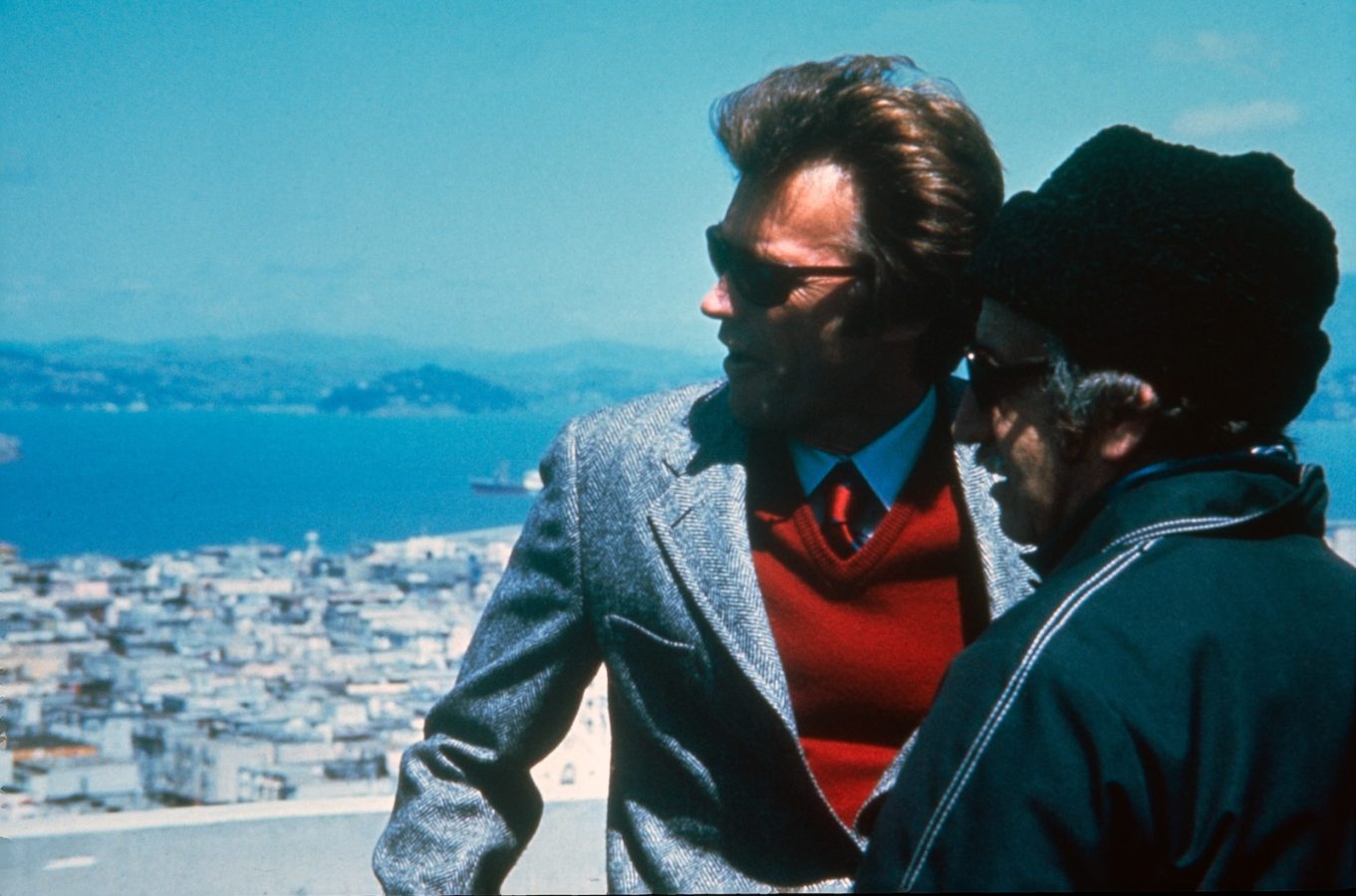 Eastwood and director Don Siegel look out on the rooftops of San Francisco, in Dirty Harry (1971).