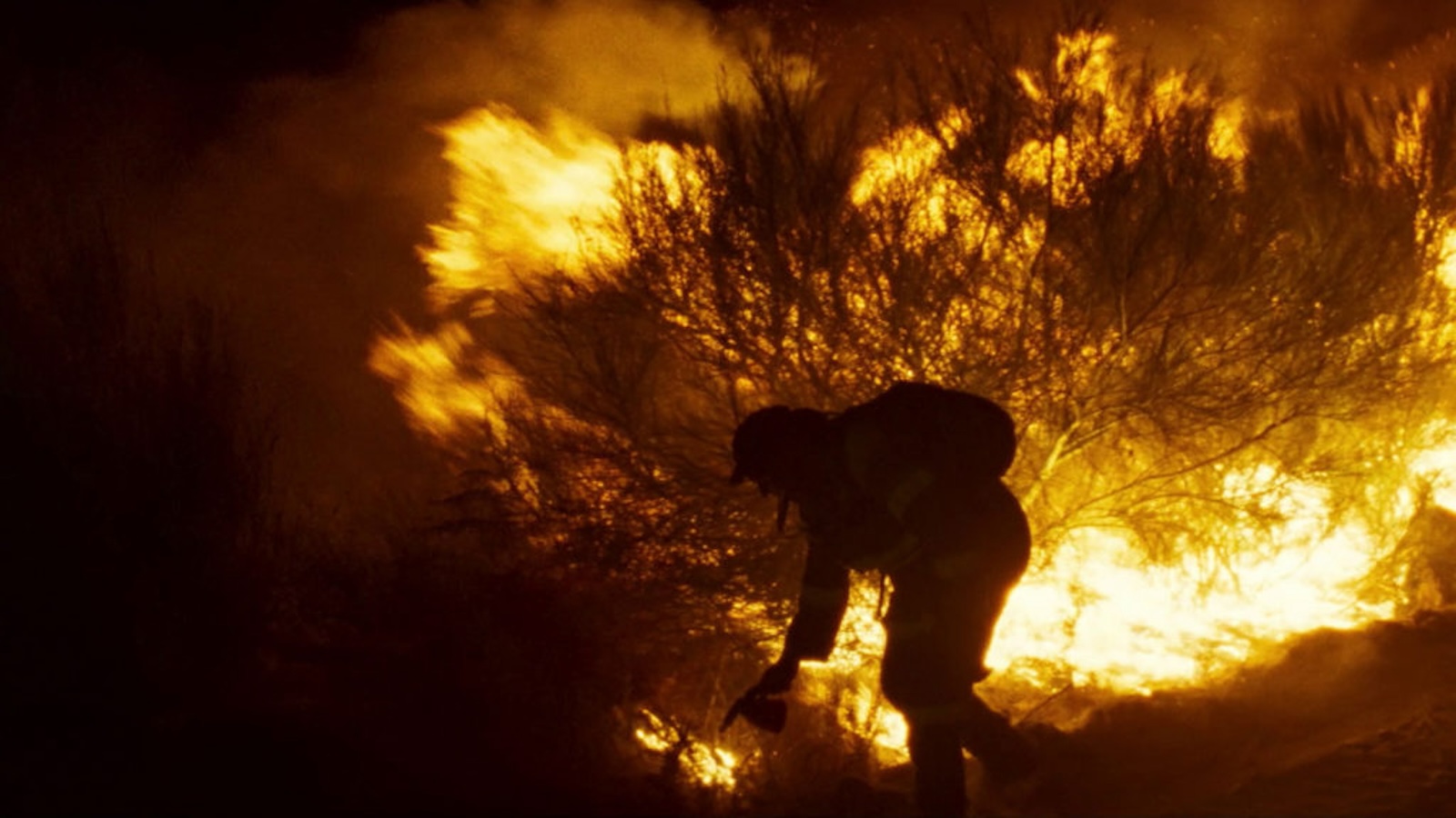 The latter quality has become a mainstay of Laxe’s cinema. Fire Will Come (2019) saw him return to his home region of Galicia and trade the aridity of the Moroccan desert for the verdant ranges of the Galician Massif. This story of a taciturn arsonist who is released from prison and attempts to reintegrate into his old life among a rural community comes to a head with cataclysmic scenes of wildfires. Laxe and his team, who had undergone firefighter training, waited for actual forest fires to break out and then filmed from within the heart of the blaze.